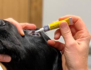 - Apply 3-5mm of ointment just above the eye and allow the ointment to melt for a short while